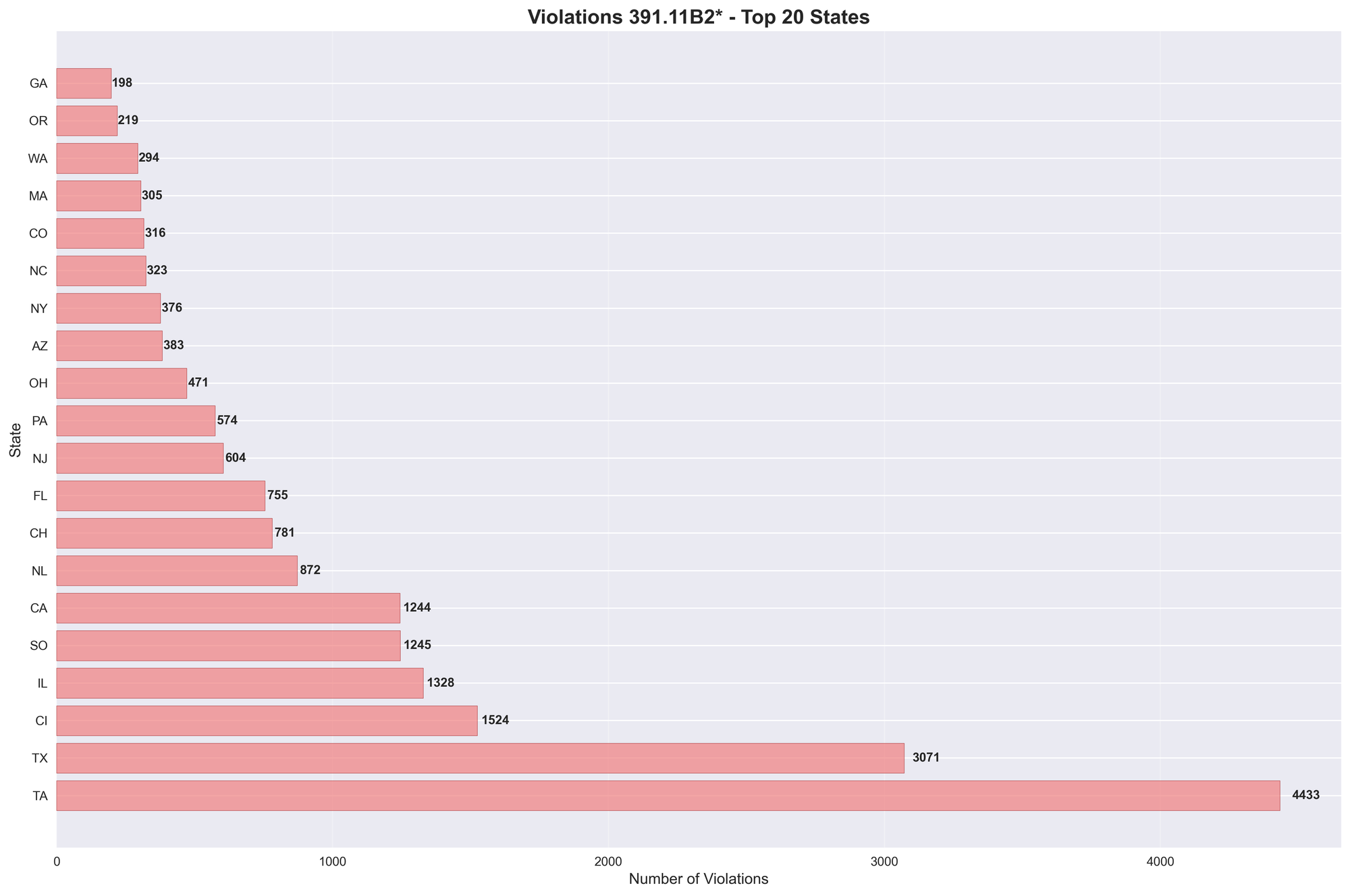 - Texas: 4,433 violations (19.9% of national total)