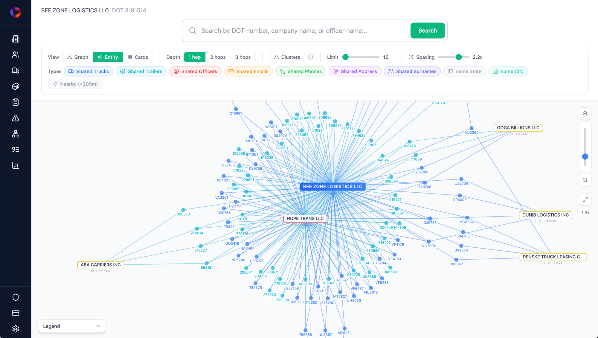 To truly understand the risk of a carrier, you have to map the entire operation. You have to trace the shared vehicles, map the human officers, and let the network graph reveal the hidden operations that a simple background check could never catch.